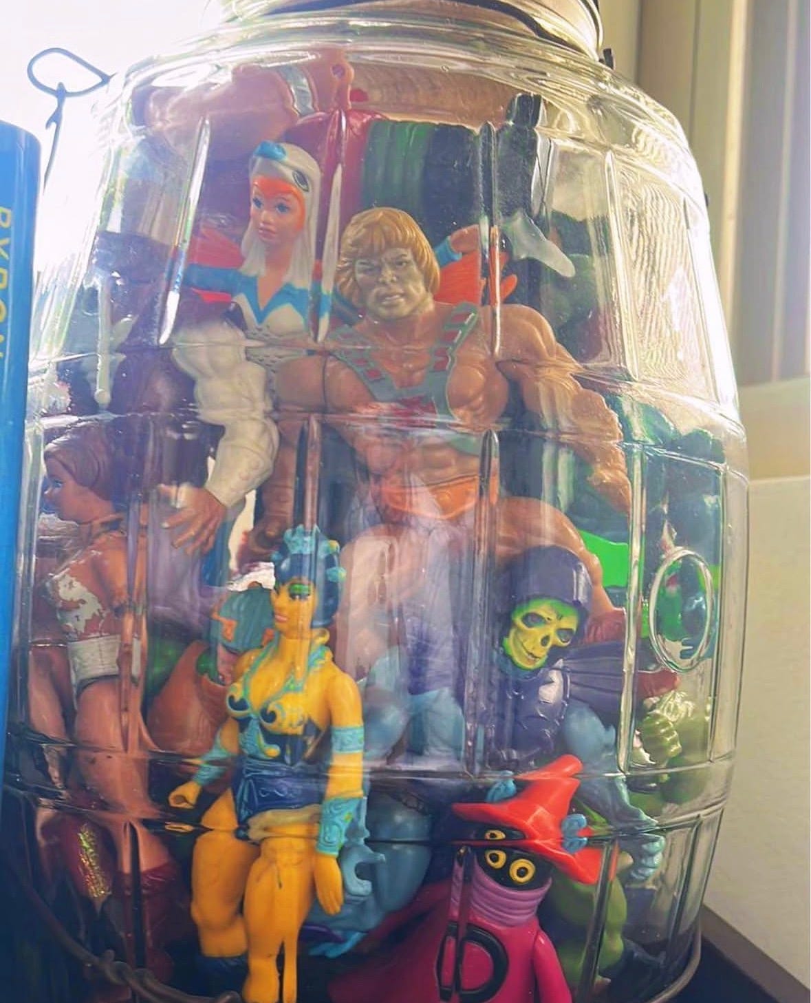 I still have all my childhood He-Man action figures. They’re in a giant jar on my nightstand.