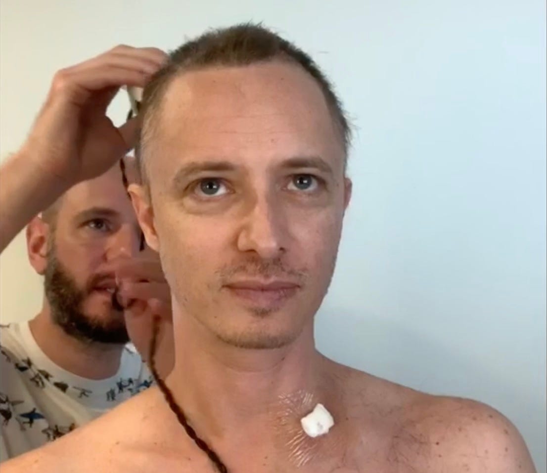 Chemo made me nauseous and hungry at the same time. My mouth tasted like chemicals and the fake berry flavoring of some of the meds. My hair started falling out. Steven helped me shave the back.